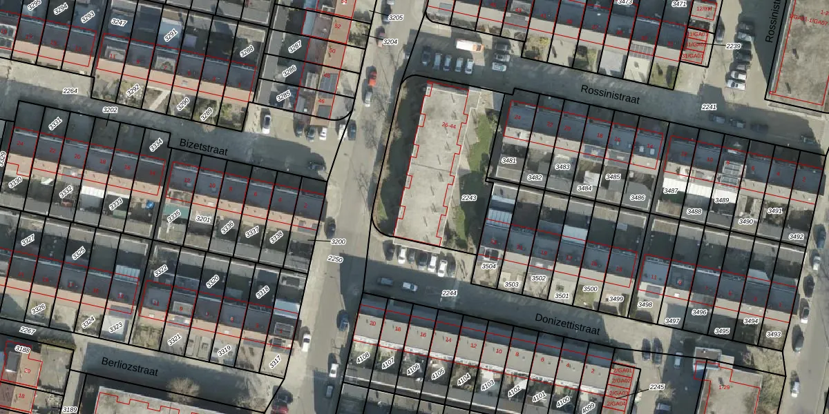 Rossinistraat 40 is gelegen op kadastraal perceel AML01I2243. Deze kadastrale aanduiding is uniek en wordt gebruikt door het Kadaster om eigendomsrechten en andere zakelijke rechten vast te leggen. Het perceel maakt onderdeel uit van de kadastrale gemeente Ambt-Almelo.