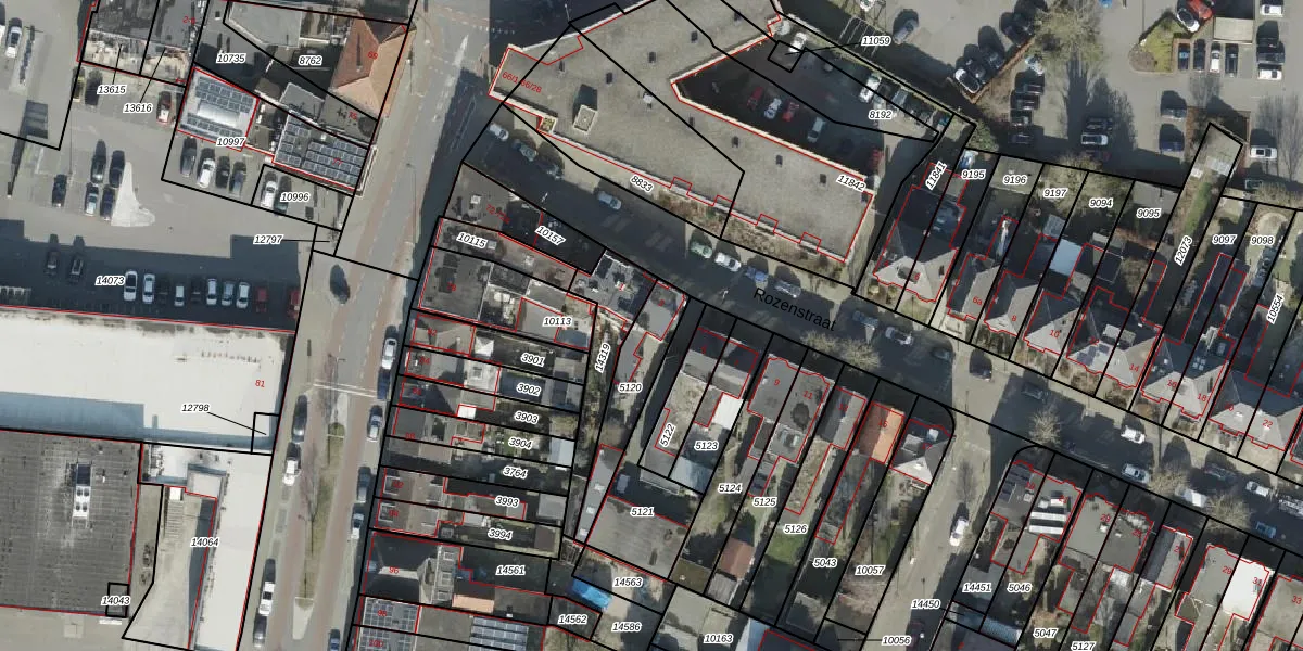 Gebruik de zoekbalk of klik op een perceel voor informatie over de adressen binnen dit perceel.