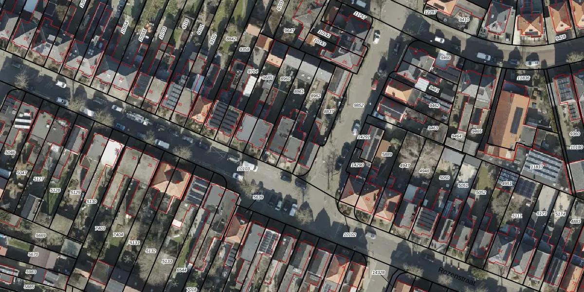 Gebruik de zoekbalk of klik op een perceel voor informatie over de adressen binnen dit perceel.