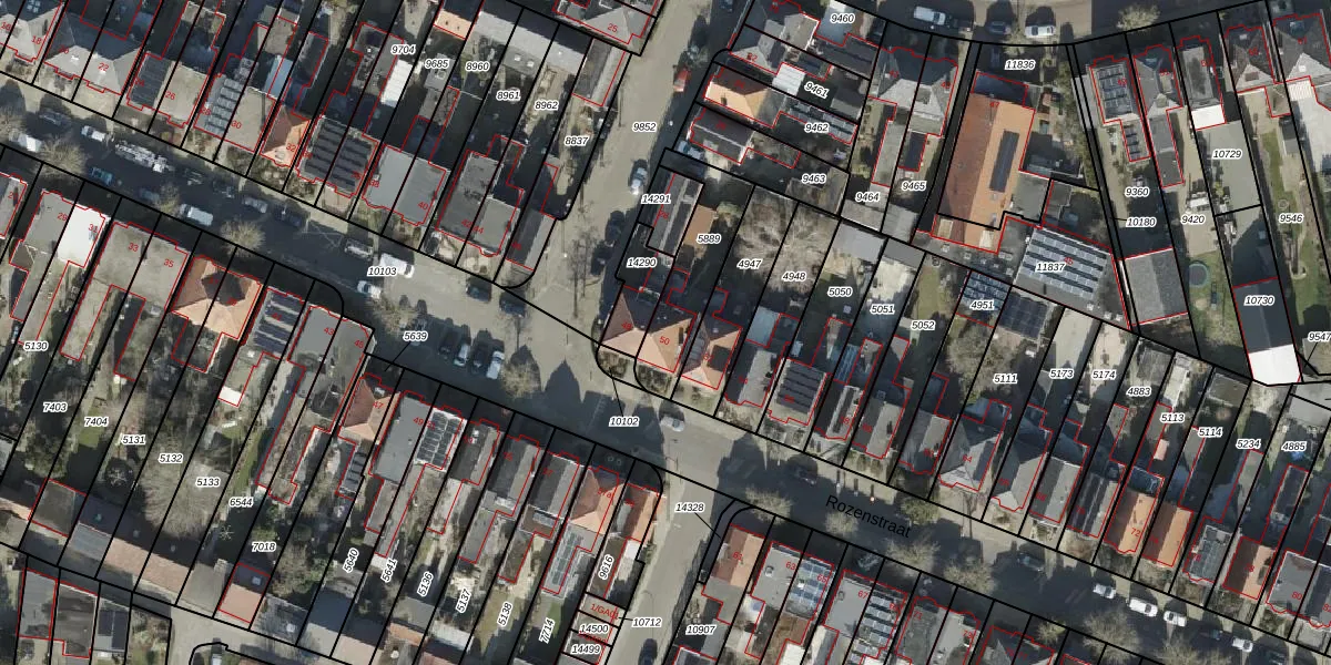 Het perceel waarop Rozenstraat 50 staat heeft een oppervlakte van 256 m². Dit is een middelgroot perceel. De perceeloppervlakte wordt geregistreerd door het Kadaster. Gedetailleerde informatie over de maten van dit perceel kunt u vinden in het rapport Kadastrale kaart met maatvoering van Rozenstraat 50.