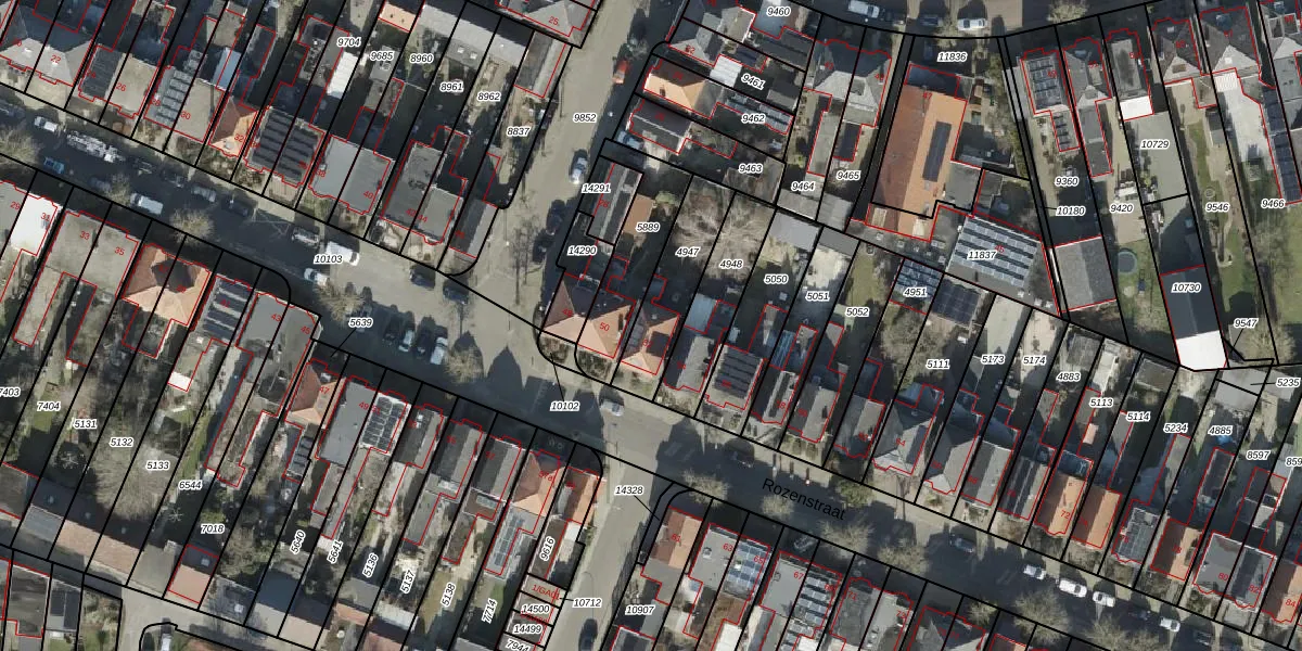 Het perceel waarop Rozenstraat 52 staat heeft een oppervlakte van 245 m². Dit is een middelgroot perceel. De perceeloppervlakte wordt geregistreerd door het Kadaster. Gedetailleerde informatie over de maten van dit perceel kunt u vinden in het rapport Kadastrale kaart met maatvoering van Rozenstraat 52.