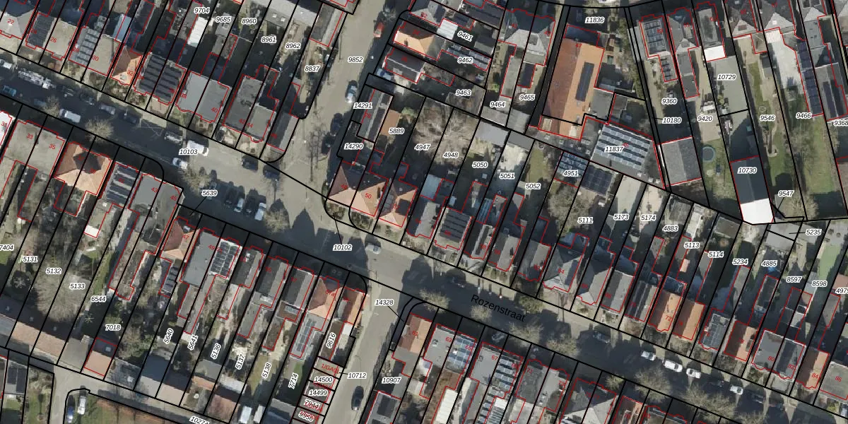 Gebruik de zoekbalk of klik op een perceel voor informatie over de adressen binnen dit perceel.