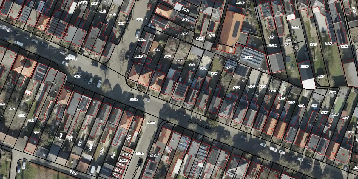 Het perceel waarop Rozenstraat 56 staat heeft een oppervlakte van 261 m². Dit is een middelgroot perceel. De perceeloppervlakte wordt geregistreerd door het Kadaster. Gedetailleerde informatie over de maten van dit perceel kunt u vinden in het rapport Kadastrale kaart met maatvoering van Rozenstraat 56.