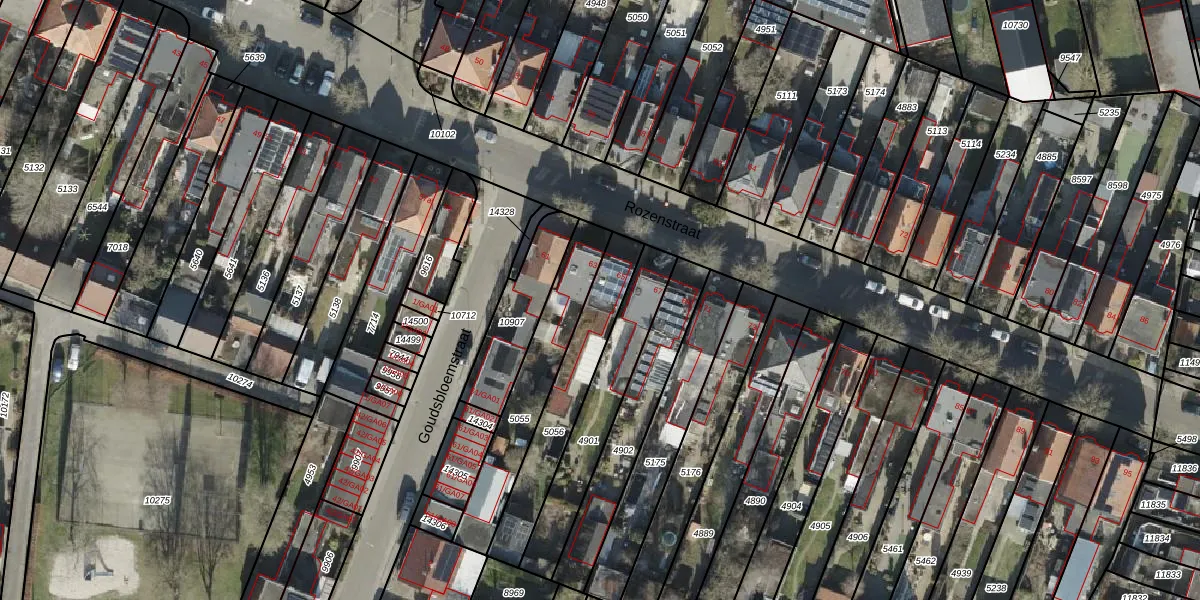 Gebruik de zoekbalk of klik op een perceel voor informatie over de adressen binnen dit perceel.