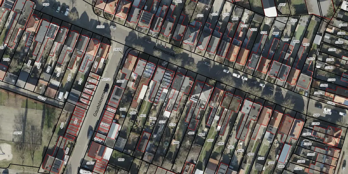 Gebruik de zoekbalk of klik op een perceel voor informatie over de adressen binnen dit perceel.
