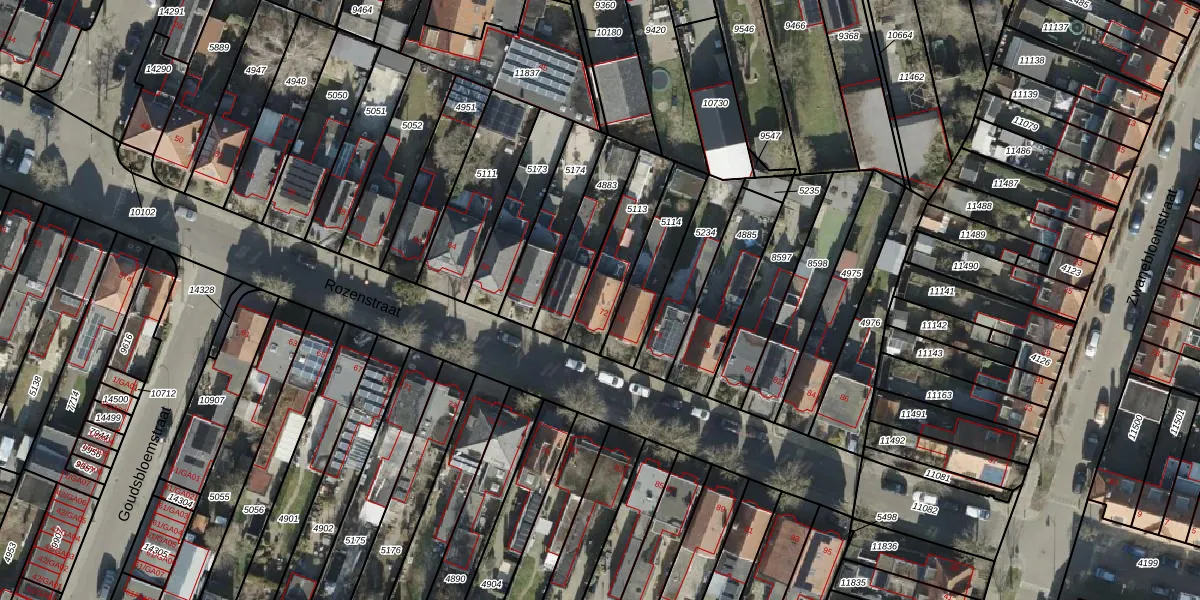 Rozenstraat 72 is gelegen op kadastraal perceel AML01H5113. Deze kadastrale aanduiding is uniek en wordt gebruikt door het Kadaster om eigendomsrechten en andere zakelijke rechten vast te leggen. Het perceel maakt onderdeel uit van de kadastrale gemeente Ambt-Almelo.