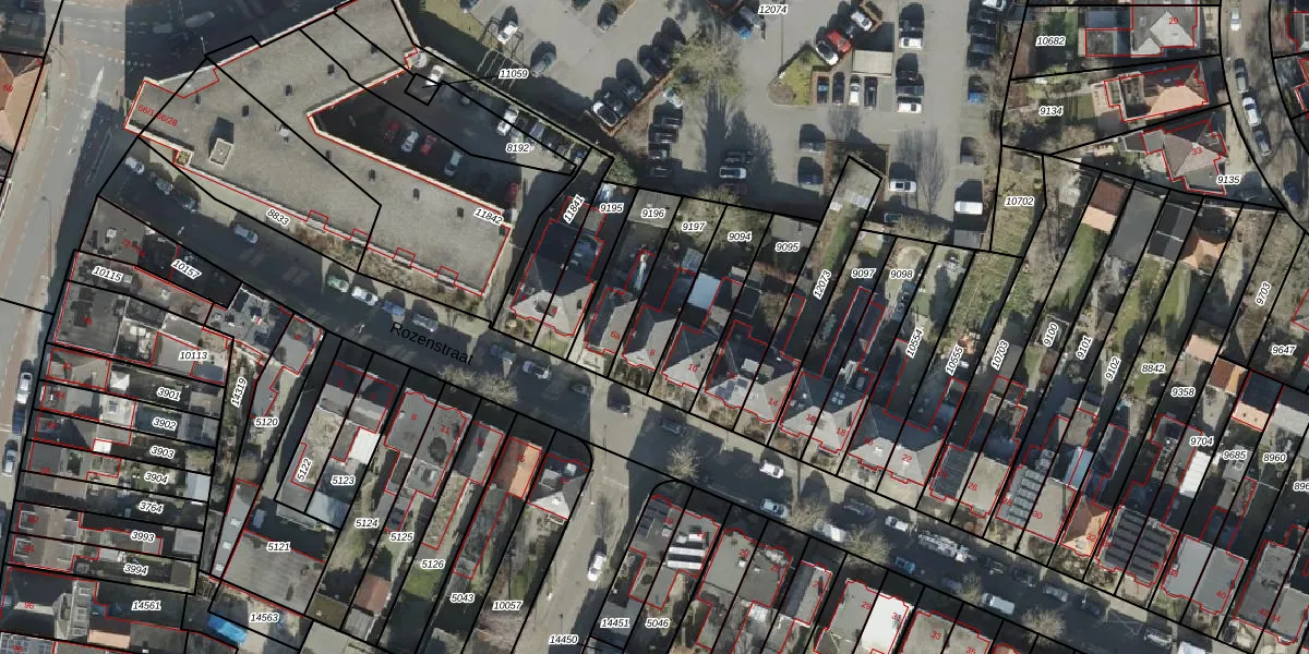 Gebruik de zoekbalk of klik op een perceel voor informatie over de adressen binnen dit perceel.