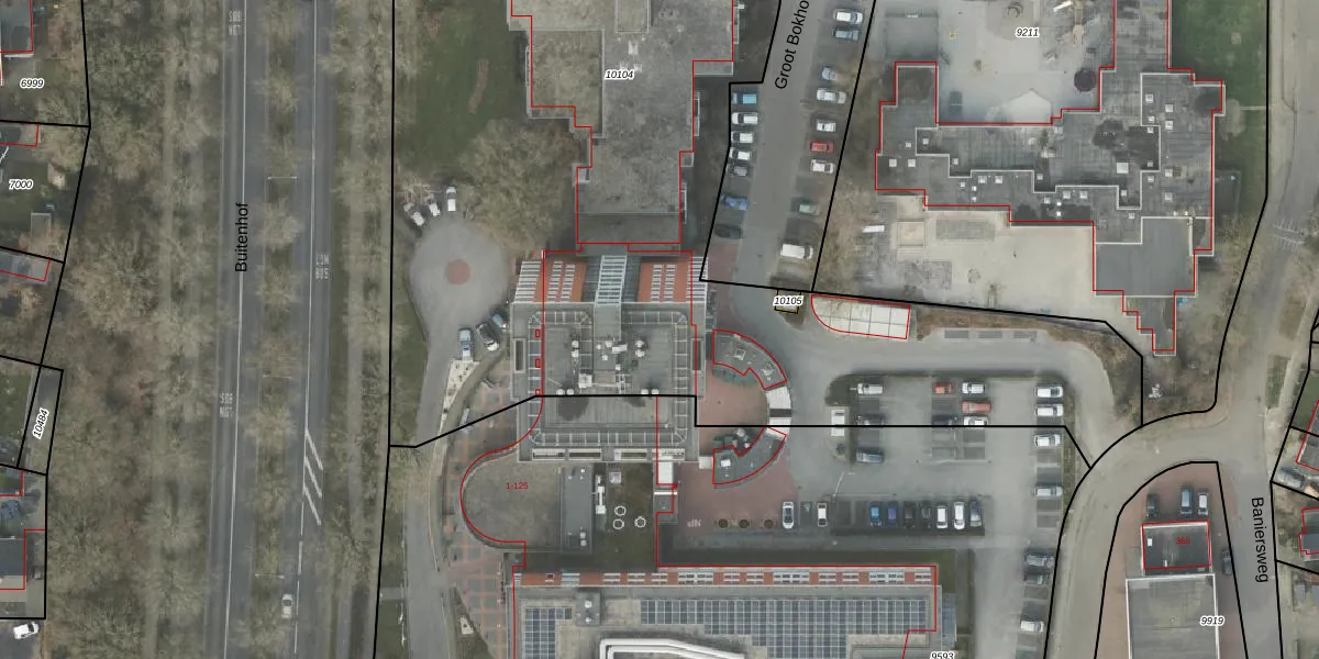 Het adres ligt op het perceel AML01-B-10104, dat zich in de kadastrale gemeente Ambt-Almelo bevindt. Het perceel is met 7314 m² relatief groot. Het gemiddelde ligt in de kadastrale gemeente Ambt-Almelo op 2069,4 m². De grootste perceeloppervlakte in de kadastrale gemeente is 67,4 ha. De kleinste oppervlakte bedraagt 0 m². Op het perceel zijn 112 adressen aanwezig. De huidige grenzen van het perceel zijn digitaal in de Basisregistratie Kadaster (BRK) geregistreerd op 04-09-2015.