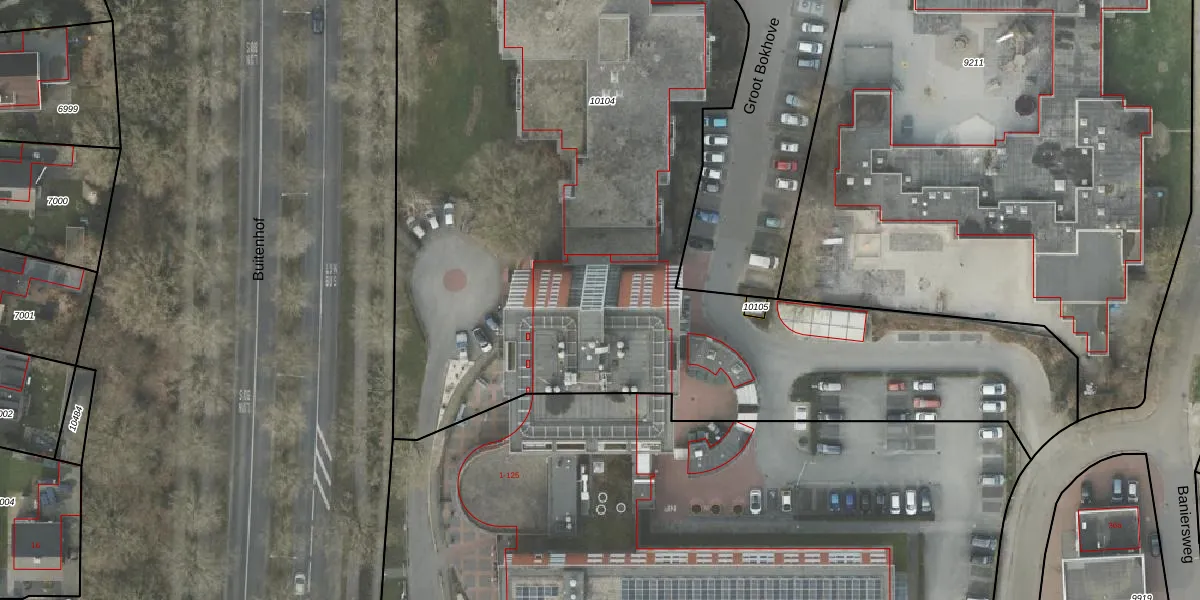 Het adres ligt op het perceel AML01-B-10104, dat zich in de kadastrale gemeente Ambt-Almelo bevindt. Het perceel is met 7314 m² relatief groot. Het gemiddelde ligt in de kadastrale gemeente Ambt-Almelo op 2069,4 m². De grootste perceeloppervlakte in de kadastrale gemeente is 67,4 ha. De kleinste oppervlakte bedraagt 0 m². Op het perceel zijn 112 adressen aanwezig. De laatste wijziging in het de Basisregistratie Kadaster (BRK) was op 04-09-2015.
