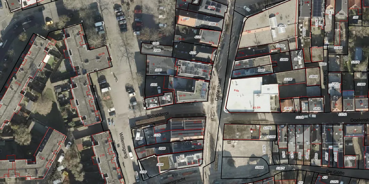 Het perceel waarop Schalderoi 1-e staat heeft een oppervlakte van 420 m². Dit is een groot perceel. De perceeloppervlakte wordt geregistreerd door het Kadaster. Gedetailleerde informatie over de maten van dit perceel kunt u vinden in het rapport Kadastrale kaart met maatvoering van Schalderoi 1-e.