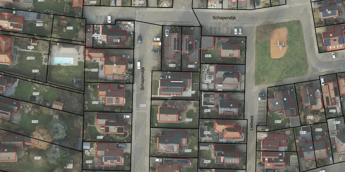Gebruik de zoekbalk of klik op een perceel voor informatie over de adressen binnen dit perceel.