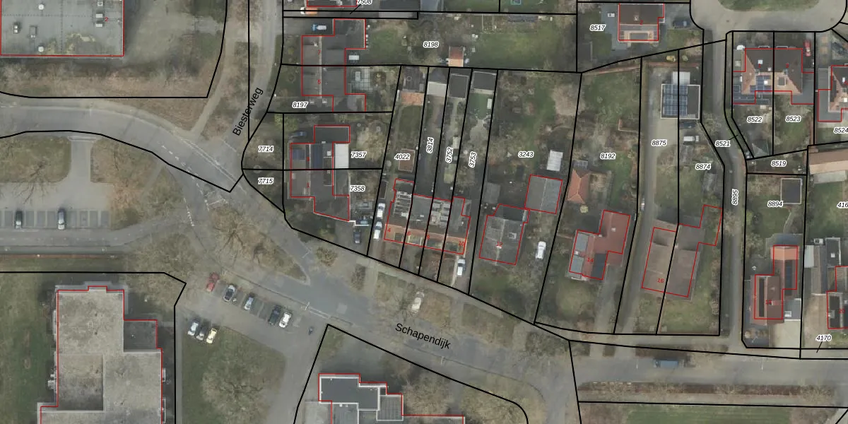 Gebruik de zoekbalk of klik op een perceel voor informatie over de adressen binnen dit perceel.