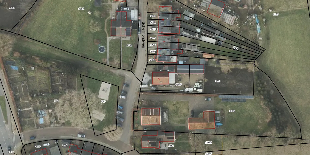 Schelfhorstweg 7-a is gelegen op kadastraal perceel AML01B8456. Deze kadastrale aanduiding is uniek en wordt gebruikt door het Kadaster om eigendomsrechten en andere zakelijke rechten vast te leggen. Het perceel maakt onderdeel uit van de kadastrale gemeente Ambt-Almelo.