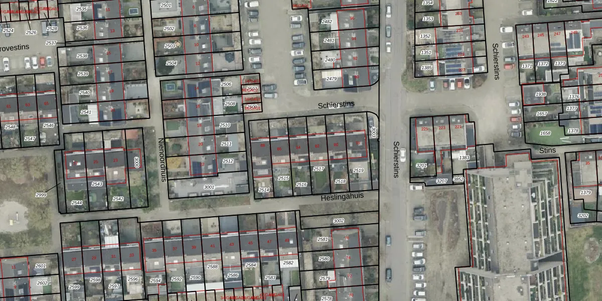 Gebruik de zoekbalk of klik op een perceel voor informatie over de adressen binnen dit perceel.