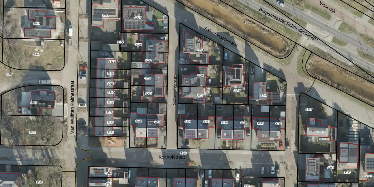 Het perceel waarop Scholtenstraat 1 staat heeft een oppervlakte van 213 m². Dit is een middelgroot perceel. De perceeloppervlakte wordt geregistreerd door het Kadaster. Gedetailleerde informatie over de maten van dit perceel kunt u vinden in het rapport Kadastrale kaart met maatvoering van Scholtenstraat 1.