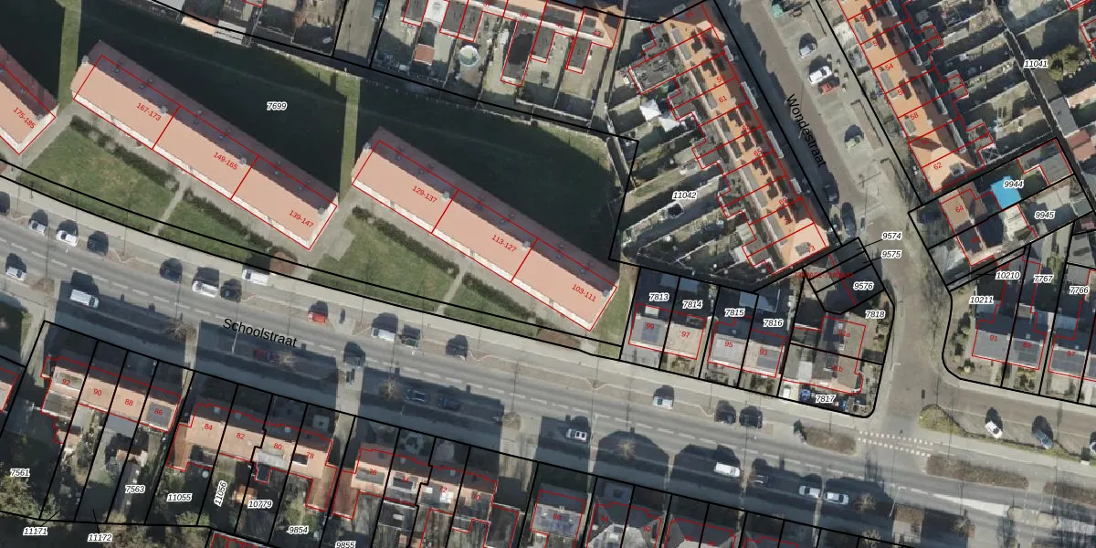 Schoolstraat 111 is gelegen op kadastraal perceel AML01H7699. Deze kadastrale aanduiding is uniek en wordt gebruikt door het Kadaster om eigendomsrechten en andere zakelijke rechten vast te leggen. Het perceel maakt onderdeel uit van de kadastrale gemeente Ambt-Almelo.