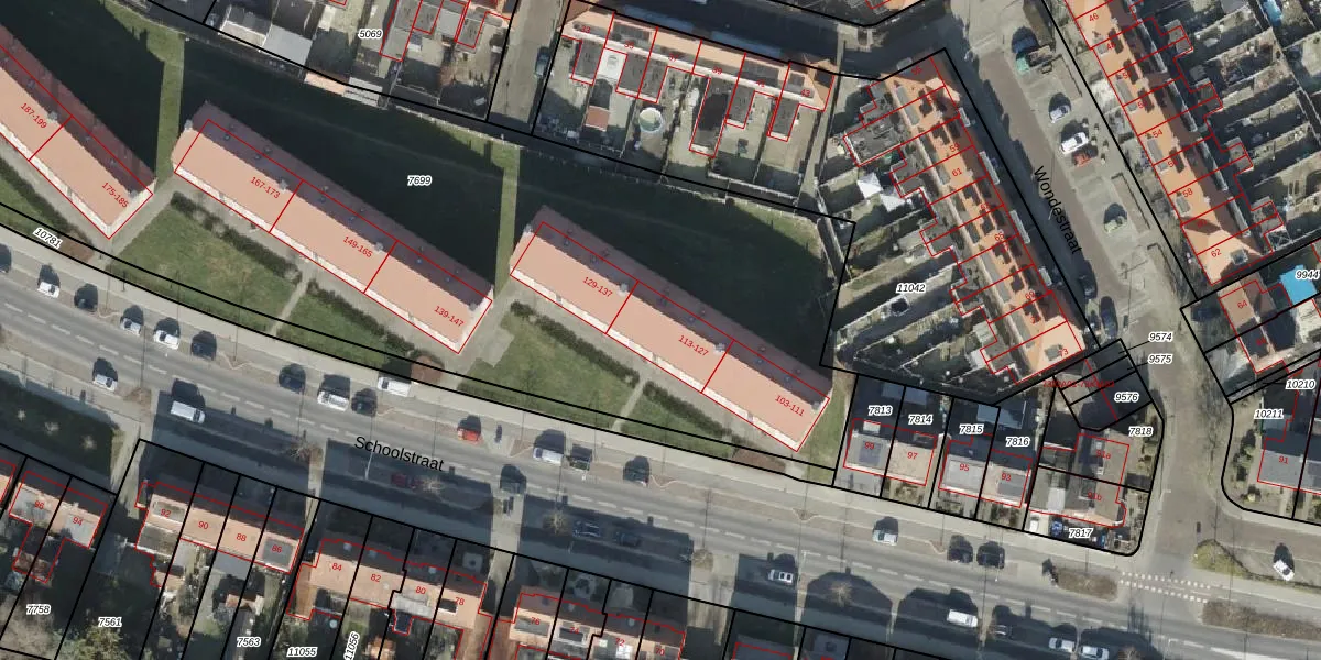 Het perceel waarop Schoolstraat 123 staat heeft een oppervlakte van 6160 m². Dit is een zeer groot perceel. De perceeloppervlakte wordt geregistreerd door het Kadaster. Gedetailleerde informatie over de maten van dit perceel kunt u vinden in het rapport Kadastrale kaart met maatvoering van Schoolstraat 123.
