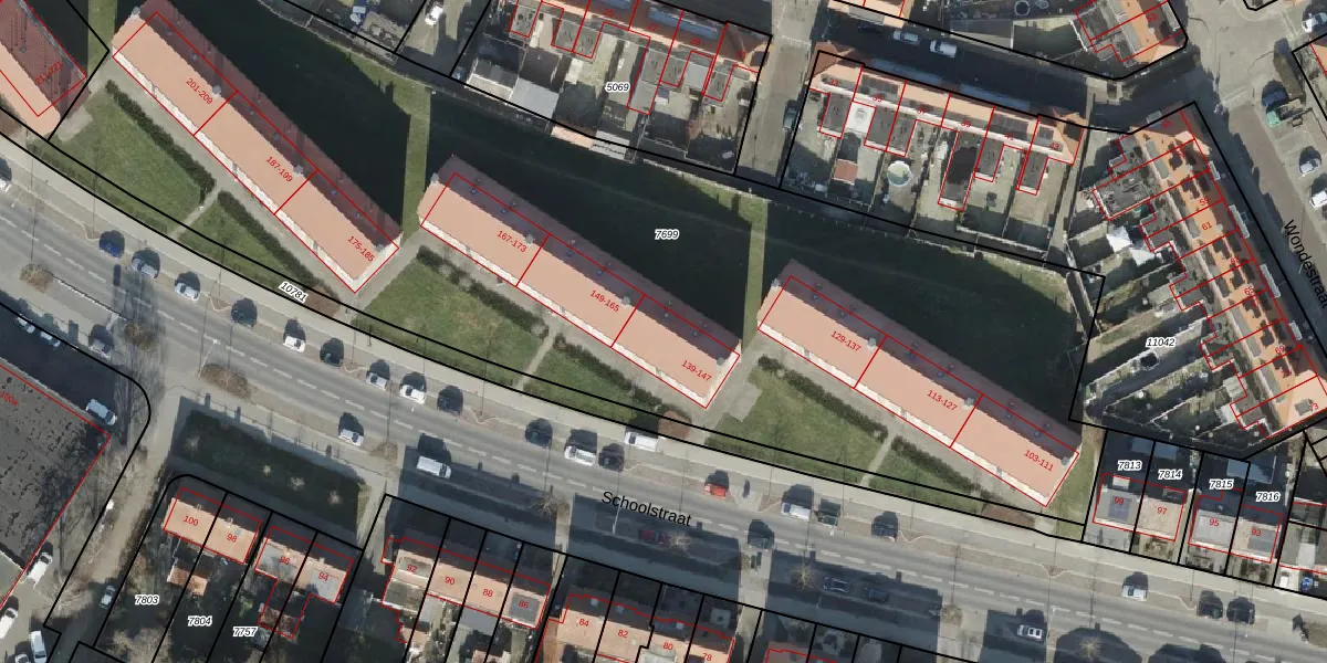 Schoolstraat 147 is gelegen op kadastraal perceel AML01H7699. Deze kadastrale aanduiding is uniek en wordt gebruikt door het Kadaster om eigendomsrechten en andere zakelijke rechten vast te leggen. Het perceel maakt onderdeel uit van de kadastrale gemeente Ambt-Almelo.