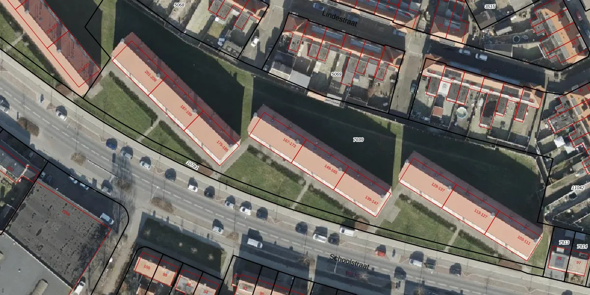 Het perceel waarop Schoolstraat 167 staat heeft een oppervlakte van 6160 m². Dit is een zeer groot perceel. De perceeloppervlakte wordt geregistreerd door het Kadaster. Gedetailleerde informatie over de maten van dit perceel kunt u vinden in het rapport Kadastrale kaart met maatvoering van Schoolstraat 167.
