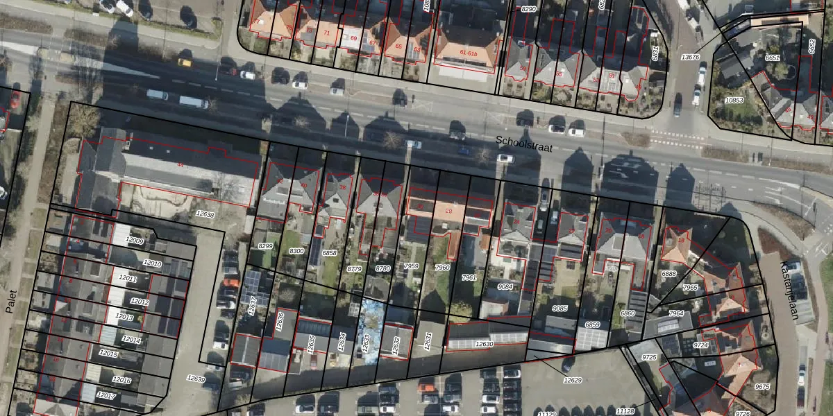 Het perceel waarop Schoolstraat 30 staat heeft een oppervlakte van 249 m². Dit is een middelgroot perceel. De perceeloppervlakte wordt geregistreerd door het Kadaster. Gedetailleerde informatie over de maten van dit perceel kunt u vinden in het rapport Kadastrale kaart met maatvoering van Schoolstraat 30.