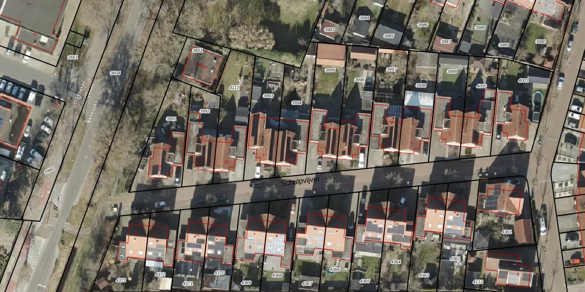 Schulpvijver 15 is gelegen op kadastraal perceel AML01G3994. Deze kadastrale aanduiding is uniek en wordt gebruikt door het Kadaster om eigendomsrechten en andere zakelijke rechten vast te leggen. Het perceel maakt onderdeel uit van de kadastrale gemeente Ambt-Almelo.