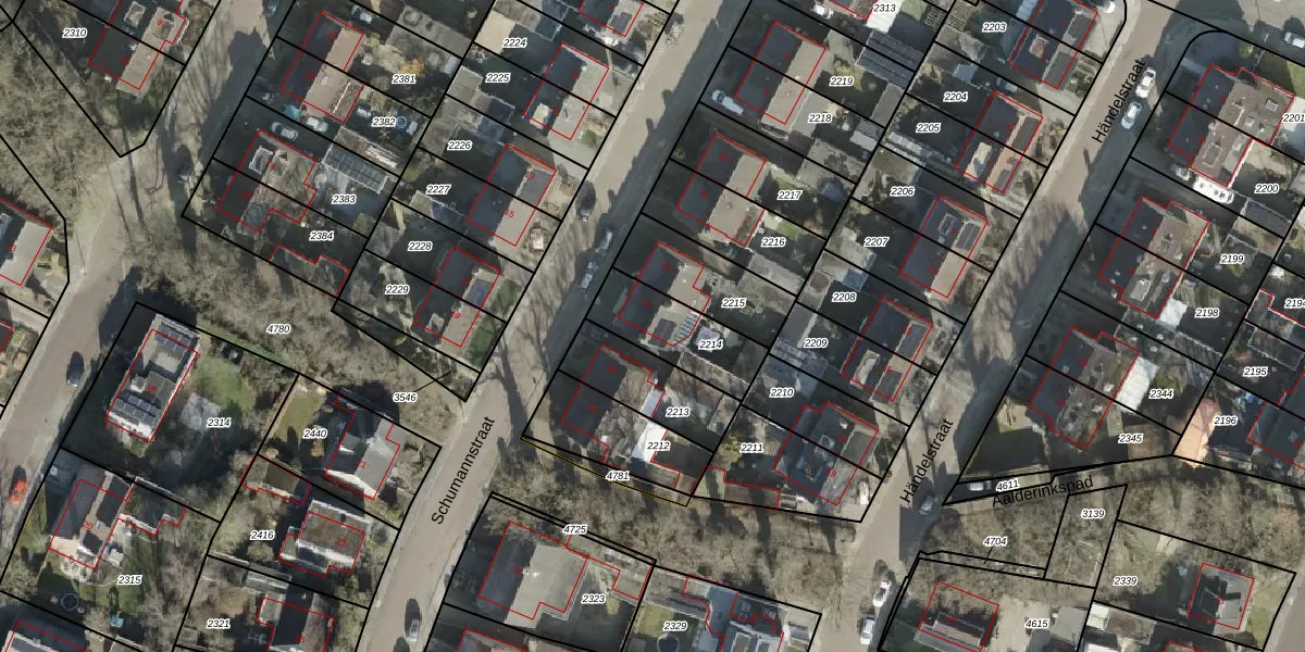 Het perceel waarop Schumannstraat 16 staat heeft een oppervlakte van 250 m². Dit is een middelgroot perceel. De perceeloppervlakte wordt geregistreerd door het Kadaster. Gedetailleerde informatie over de maten van dit perceel kunt u vinden in het rapport Kadastrale kaart met maatvoering van Schumannstraat 16.