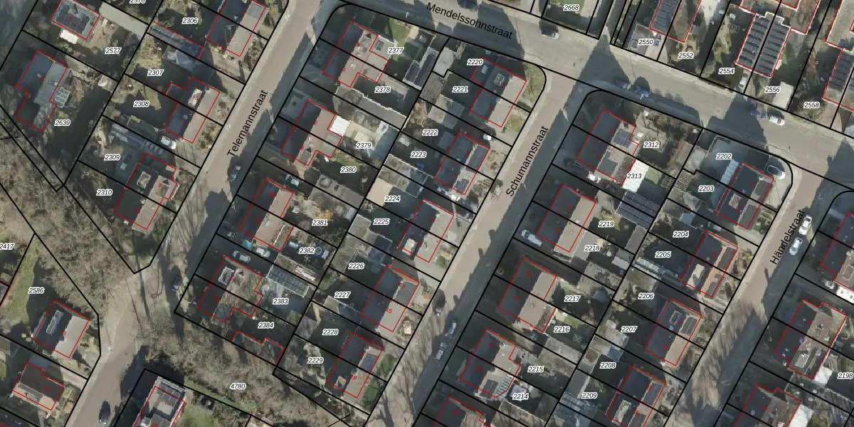 Het perceel waarop Schumannstraat 9 staat heeft een oppervlakte van 223 m². Dit is een middelgroot perceel. De perceeloppervlakte wordt geregistreerd door het Kadaster. Gedetailleerde informatie over de maten van dit perceel kunt u vinden in het rapport Kadastrale kaart met maatvoering van Schumannstraat 9.
