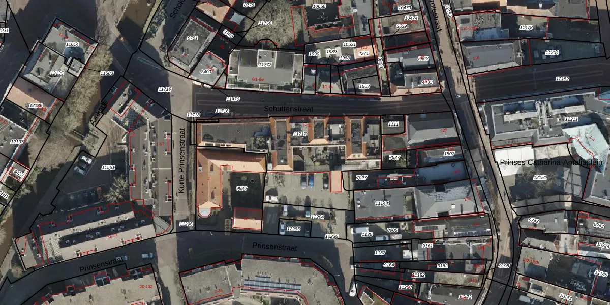 Schuttenstraat 23 is gelegen op kadastraal perceel AML02B11717. Deze kadastrale aanduiding is uniek en wordt gebruikt door het Kadaster om eigendomsrechten en andere zakelijke rechten vast te leggen. Het perceel maakt onderdeel uit van de kadastrale gemeente Stad-Almelo.
