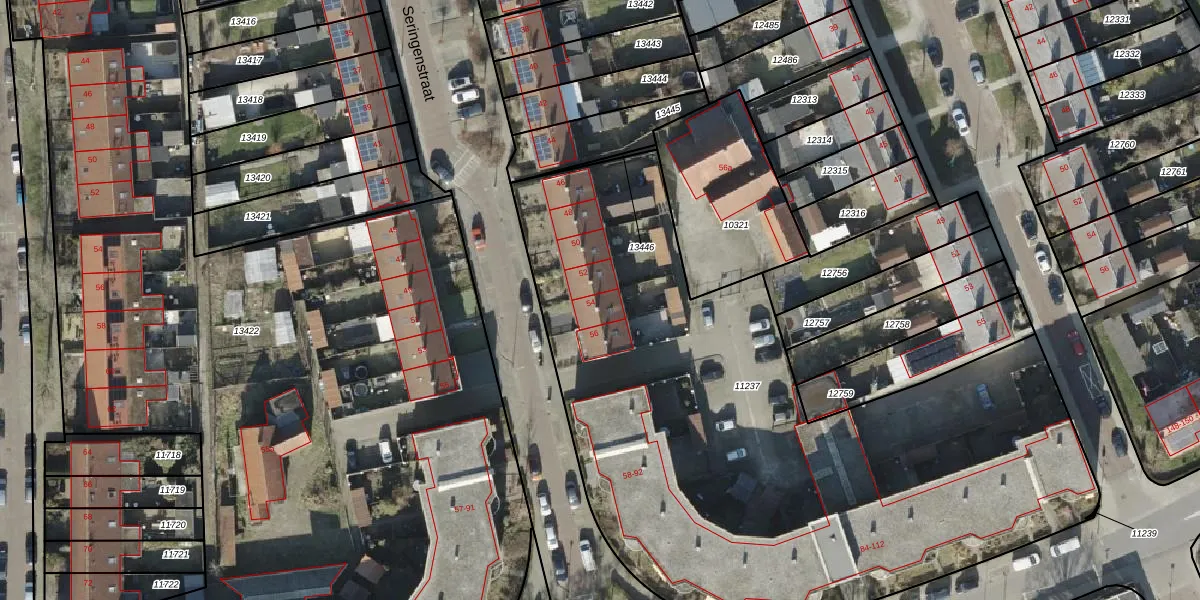 Seringenstraat 54 is gelegen op kadastraal perceel AML01H11237. Deze kadastrale aanduiding is uniek en wordt gebruikt door het Kadaster om eigendomsrechten en andere zakelijke rechten vast te leggen. Het perceel maakt onderdeel uit van de kadastrale gemeente Ambt-Almelo.