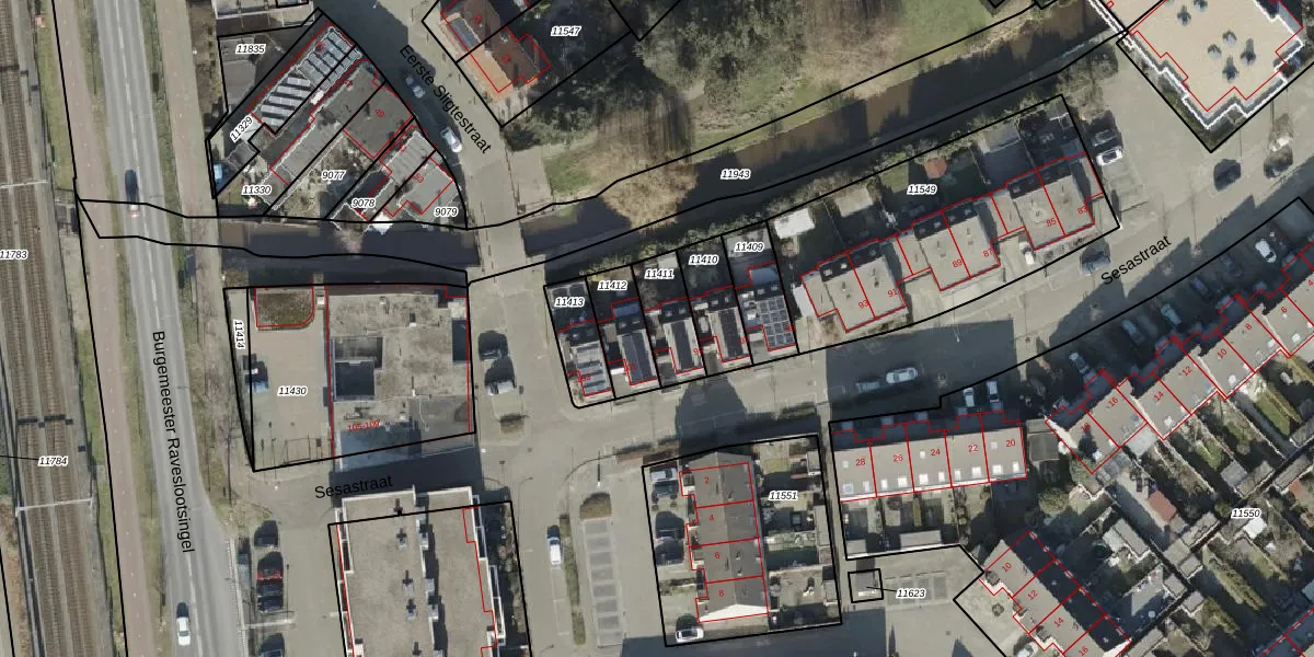 Gebruik de zoekbalk of klik op een perceel voor informatie over de adressen binnen dit perceel.