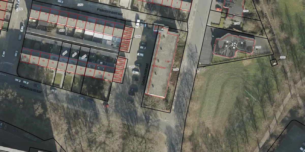 Sibeliusstraat 1-GA06 is gelegen op kadastraal perceel AML01I2256. Deze kadastrale aanduiding is uniek en wordt gebruikt door het Kadaster om eigendomsrechten en andere zakelijke rechten vast te leggen. Het perceel maakt onderdeel uit van de kadastrale gemeente Ambt-Almelo.
