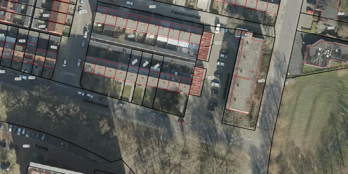 Het perceel waarop Sibeliusstraat 33 staat heeft een oppervlakte van 2737 m². Dit is een zeer groot perceel. De perceeloppervlakte wordt geregistreerd door het Kadaster. Gedetailleerde informatie over de maten van dit perceel kunt u vinden in het rapport Kadastrale kaart met maatvoering van Sibeliusstraat 33.