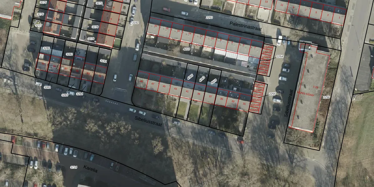 Het perceel waarop Sibeliusstraat 41 staat heeft een oppervlakte van 188 m². Dit is een middelgroot perceel. De perceeloppervlakte wordt geregistreerd door het Kadaster. Gedetailleerde informatie over de maten van dit perceel kunt u vinden in het rapport Kadastrale kaart met maatvoering van Sibeliusstraat 41.