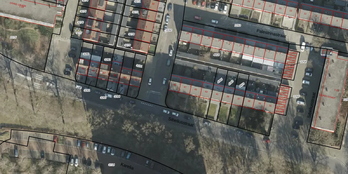 Het perceel waarop Sibeliusstraat 49 staat heeft een oppervlakte van 2737 m². Dit is een zeer groot perceel. De perceeloppervlakte wordt geregistreerd door het Kadaster. Gedetailleerde informatie over de maten van dit perceel kunt u vinden in het rapport Kadastrale kaart met maatvoering van Sibeliusstraat 49.