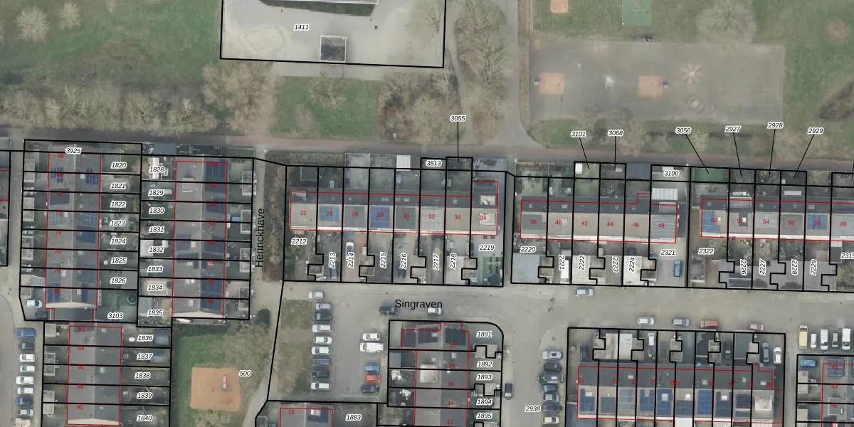Gebruik de zoekbalk of klik op een perceel voor informatie over de adressen binnen dit perceel.