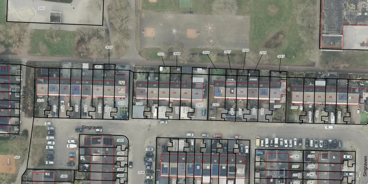 Gebruik de zoekbalk of klik op een perceel voor informatie over de adressen binnen dit perceel.