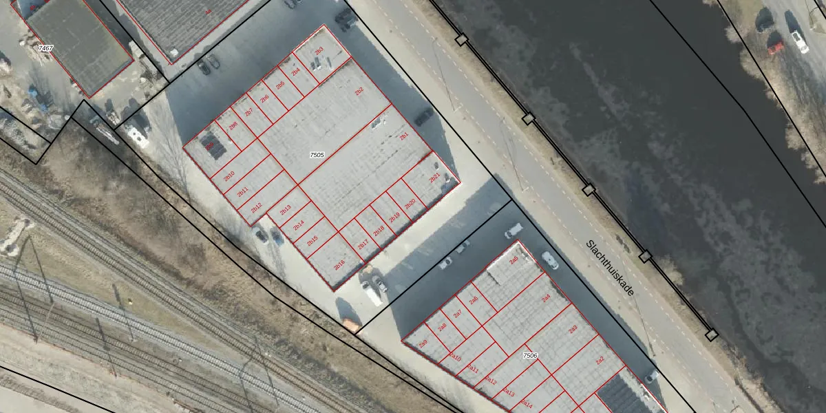 Slachthuiskade 2-b-20 is gelegen op kadastraal perceel AML01A7505. Deze kadastrale aanduiding is uniek en wordt gebruikt door het Kadaster om eigendomsrechten en andere zakelijke rechten vast te leggen. Het perceel maakt onderdeel uit van de kadastrale gemeente Ambt-Almelo.
