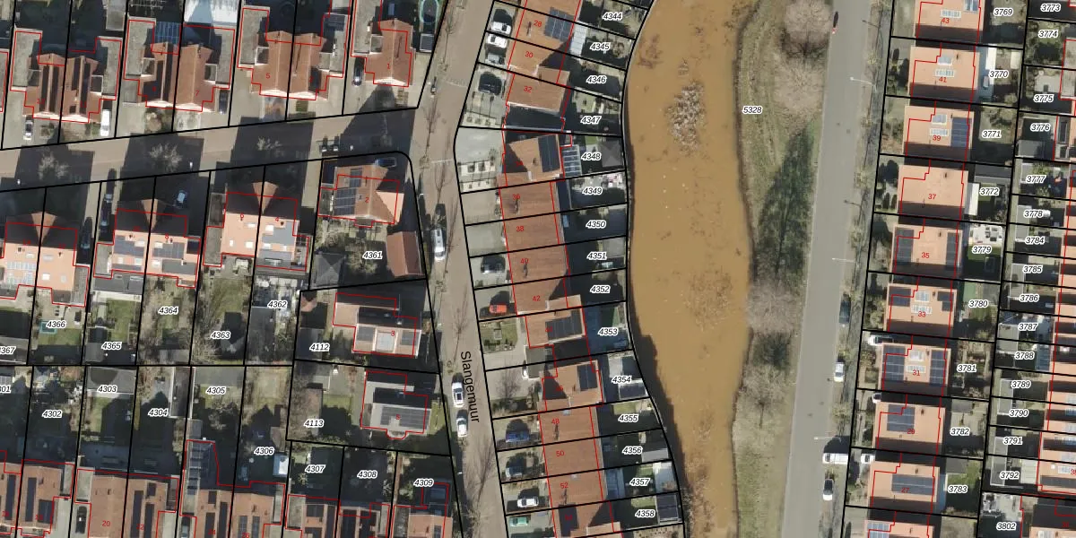 Het perceel waarop Slangemuur 40 staat heeft een oppervlakte van 175 m². Dit is een middelgroot perceel. De perceeloppervlakte wordt geregistreerd door het Kadaster. Gedetailleerde informatie over de maten van dit perceel kunt u vinden in het rapport Kadastrale kaart met maatvoering van Slangemuur 40.