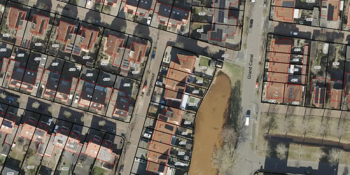 Het perceel waarop Slangemuur 6 staat heeft een oppervlakte van 174 m². Dit is een middelgroot perceel. De perceeloppervlakte wordt geregistreerd door het Kadaster. Gedetailleerde informatie over de maten van dit perceel kunt u vinden in het rapport Kadastrale kaart met maatvoering van Slangemuur 6.