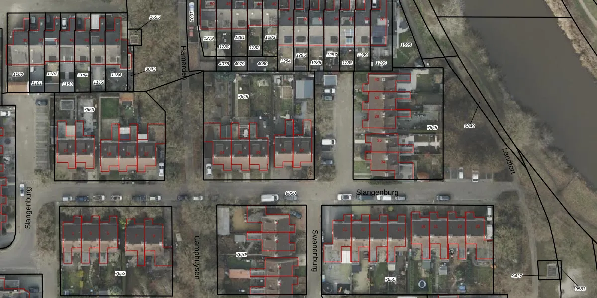 Het perceel waarop Slangenburg 32 staat heeft een oppervlakte van 1353 m². Dit is een zeer groot perceel. De perceeloppervlakte wordt geregistreerd door het Kadaster. Gedetailleerde informatie over de maten van dit perceel kunt u vinden in het rapport Kadastrale kaart met maatvoering van Slangenburg 32.