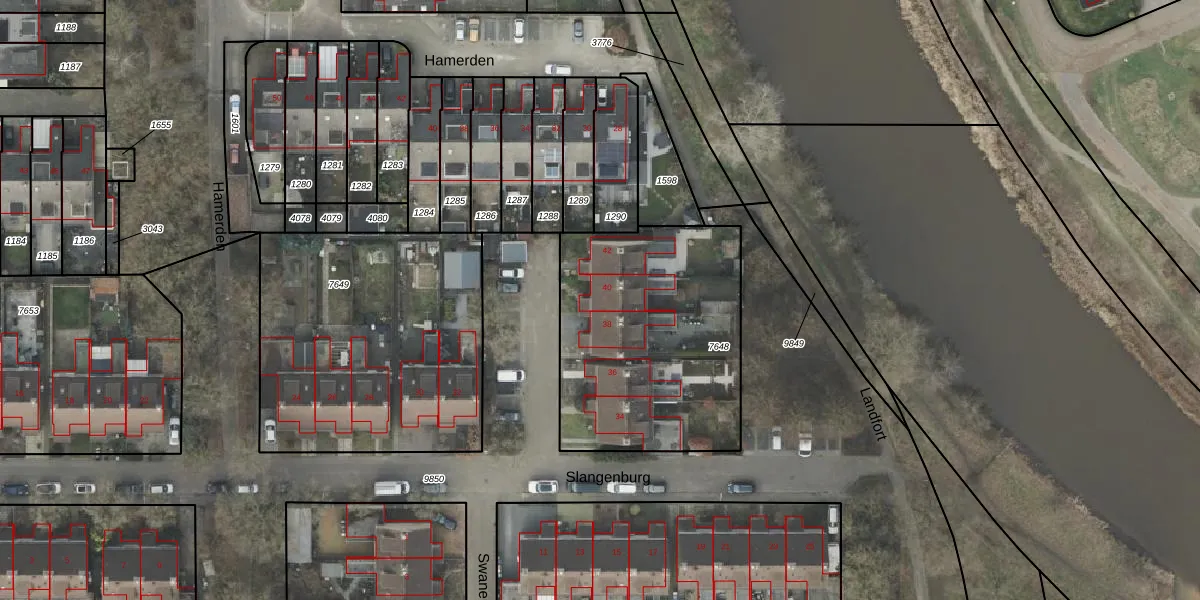 Slangenburg 40 is gelegen op kadastraal perceel AML01B7648. Deze kadastrale aanduiding is uniek en wordt gebruikt door het Kadaster om eigendomsrechten en andere zakelijke rechten vast te leggen. Het perceel maakt onderdeel uit van de kadastrale gemeente Ambt-Almelo.