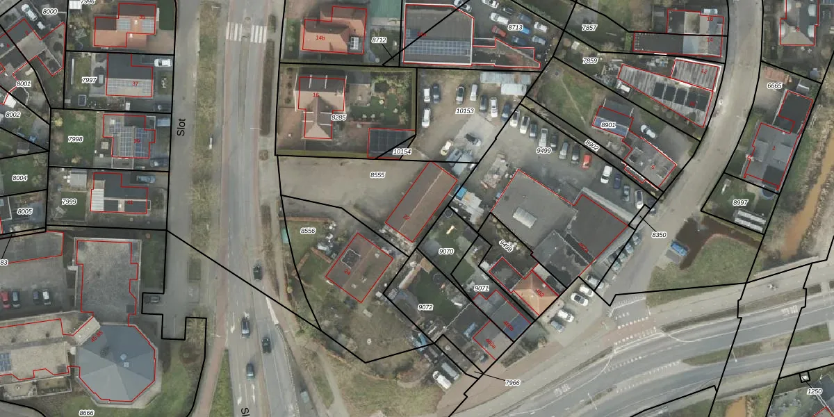 Het perceel waarop Slot 22 staat heeft een oppervlakte van 640 m². Dit is een groot perceel. De perceeloppervlakte wordt geregistreerd door het Kadaster. Gedetailleerde informatie over de maten van dit perceel kunt u vinden in het rapport Kadastrale kaart met maatvoering van Slot 22.