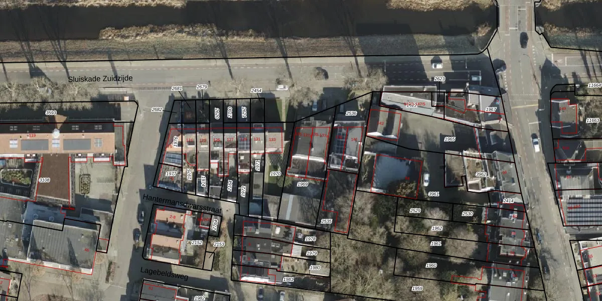 Sluiskade Zuidzijde 135 is gelegen op kadastraal perceel AML01K1969. Deze kadastrale aanduiding is uniek en wordt gebruikt door het Kadaster om eigendomsrechten en andere zakelijke rechten vast te leggen. Het perceel maakt onderdeel uit van de kadastrale gemeente Ambt-Almelo.