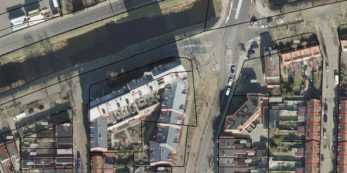 Het perceel waarop Sluiskade Zuidzijde 37-20 staat heeft een oppervlakte van 1791 m². Dit is een zeer groot perceel. De perceeloppervlakte wordt geregistreerd door het Kadaster. Gedetailleerde informatie over de maten van dit perceel kunt u vinden in het rapport Kadastrale kaart met maatvoering van Sluiskade Zuidzijde 37-20.