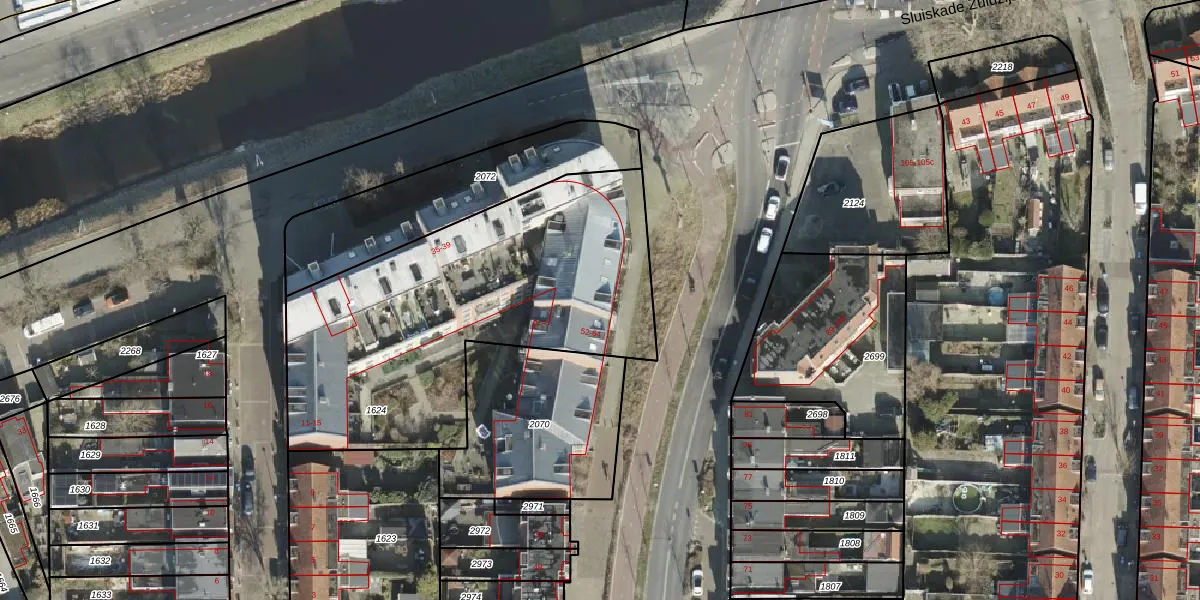 Het perceel waarop Sluiskade Zuidzijde 37-29 staat heeft een oppervlakte van 1791 m². Dit is een zeer groot perceel. De perceeloppervlakte wordt geregistreerd door het Kadaster. Gedetailleerde informatie over de maten van dit perceel kunt u vinden in het rapport Kadastrale kaart met maatvoering van Sluiskade Zuidzijde 37-29.