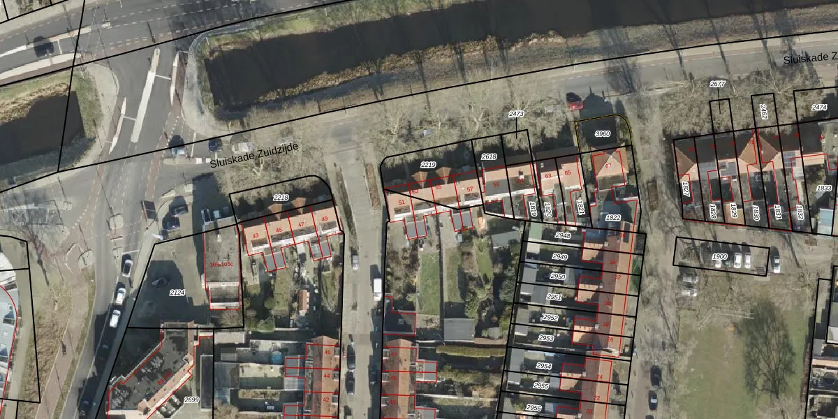 Het perceel waarop Sluiskade Zuidzijde 53 staat heeft een oppervlakte van 2890 m². Dit is een zeer groot perceel. De perceeloppervlakte wordt geregistreerd door het Kadaster. Gedetailleerde informatie over de maten van dit perceel kunt u vinden in het rapport Kadastrale kaart met maatvoering van Sluiskade Zuidzijde 53.