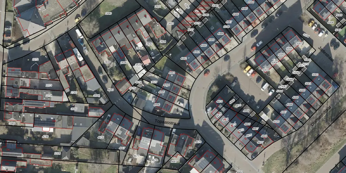 Het perceel waarop Smaragdstraat 49 staat heeft een oppervlakte van 156 m². Dit is een middelgroot perceel. De perceeloppervlakte wordt geregistreerd door het Kadaster. Gedetailleerde informatie over de maten van dit perceel kunt u vinden in het rapport Kadastrale kaart met maatvoering van Smaragdstraat 49.