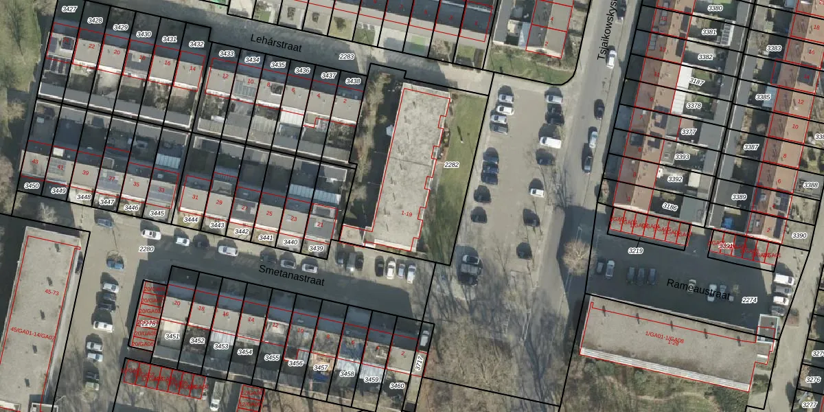 Smetanastraat 13 is gelegen op kadastraal perceel AML01I2282. Deze kadastrale aanduiding is uniek en wordt gebruikt door het Kadaster om eigendomsrechten en andere zakelijke rechten vast te leggen. Het perceel maakt onderdeel uit van de kadastrale gemeente Ambt-Almelo.