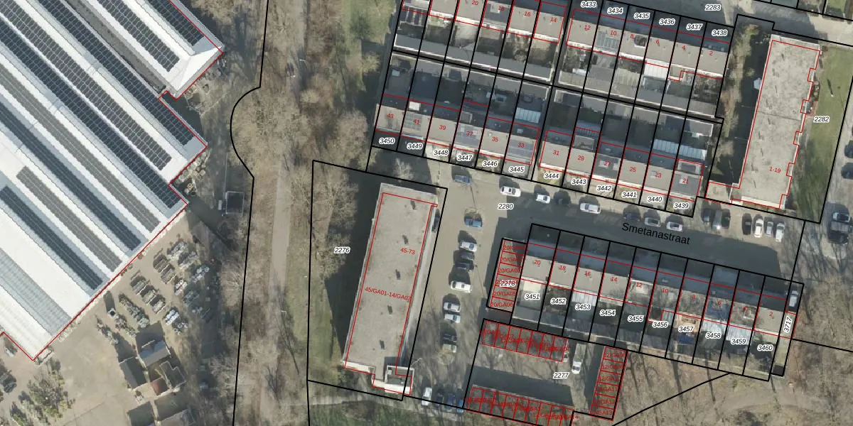 Smetanastraat 45-GA01 is gelegen op kadastraal perceel AML01I2276. Deze kadastrale aanduiding is uniek en wordt gebruikt door het Kadaster om eigendomsrechten en andere zakelijke rechten vast te leggen. Het perceel maakt onderdeel uit van de kadastrale gemeente Ambt-Almelo.
