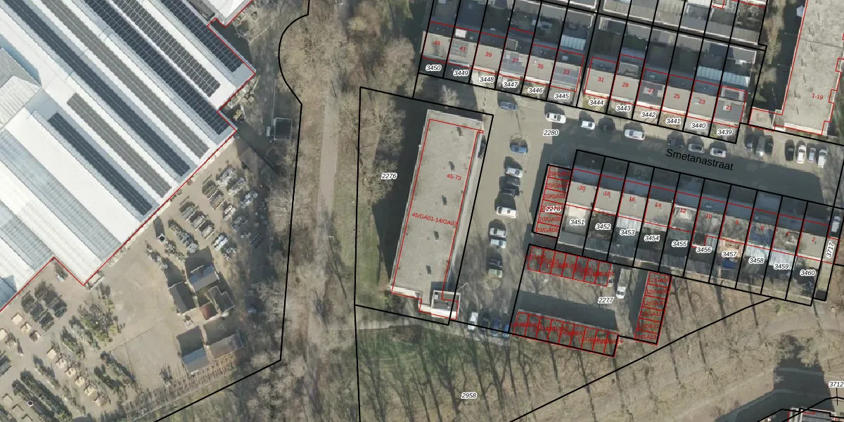 Het perceel waarop Smetanastraat 59 staat heeft een oppervlakte van 1410 m². Dit is een zeer groot perceel. De perceeloppervlakte wordt geregistreerd door het Kadaster. Gedetailleerde informatie over de maten van dit perceel kunt u vinden in het rapport Kadastrale kaart met maatvoering van Smetanastraat 59.
